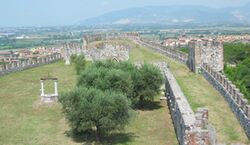 The Rocca of Lonato surmounts a hill dominating the southern side of Lake Garda. The southern slope shelters the historical centre of Lonato, the limits of which, today, borders the Padana lowlands.