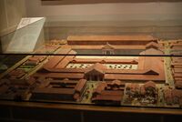 - ^ Note that this image includes both the garrison fort, which was demolished in the 3rd century, and the Mithraeum, which was abandoned around the same time. The identification of the "governor's palace" remains conjectural.