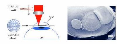 وهناك أيضا الكثير من التطبيقات الجراحية. ففي جراحة الأوعية الدموية الشعرية يستطيع ليزر النبضات البالغة القصر أن يحفر ثقوبا صغيرة في جدران القلب لتزويد عضلاته التي انسدت أوعيتها الدموية بصورة دائمة بالدم المؤكسج oxygenated. هذا وإن النبضات البالغة القصر فعالة بصورة خاصة لأن استطاعتها الوسطية المنخفضة تقلل من تخريب الأنسجة. وقد استخدم العلميون في مختبر لورنس ليفرمور الوطني النبضات البالغة القصر، إضافة إلى منظومة مراقبة ذكية لإزالة الزوائد العظمية في العمود الفقري من دون إلحاق الأذى بالنسيج العصبي المجاور. كما أقام باحثون (من جامعة ميتشيگان ومن جامعة هايدلبرگ في ألمانيا) الدليل على نوع رائع من جراحة العيون: تشكل حزمة من النبضات البالغة القصر المبأرة على عمق مضبوط تماما في القرنية شبكة صغيرة من الفقاقيع أو التجاويف المتصل بعضها ببعض [انظر الشكل السفلي في الصفحة 65]. ويمكن عندئذ سلخ حافة القرنية مما يكشف النسيج السفلي ويجعله قابلا للإزالة، ثم تعاد الطبقة العلوية ويبقى سطحها الأملس سليما. ويؤدي جعل القرنية منبسطة إلى تصحيح قصر النظر.