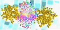 Relativistic gold ions collide to make a hadronic fireball; frame from animation by Brookhaven National Laboratory