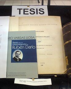 أطروحة بارگاس يوسا أسس تفسير روبين داريو، التي قدمها إلى جامعته الأم، جامعة سان ماركوس الوطنية، عام 1958.