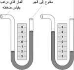 يستخدم الأنبوب ذو الشعبتين manometer لقياس ضغط الغاز، وهو أكثر دقة من مقياس بوردون Bourdon، إذا أُريد قياس ضغوط منخفضة نسبياً. وهو يأخذ كما هو ظاهر في الشكل (1) شكل أنبوب على هيئة الحرف U يحتوي على الزئبق أو سائل آخر بحيث تكون سوية السائل في شعبتيه واحدة عندما يكون الضغط على شعبتي الأنبوب واحداً. توصل إحدى شعبتي الأنبوب بالغاز، وتتصل الشعبة الأخرى عادة بالجو. ويقاس ضغط الغاز بملاحظة الفرق بين سويتي السائل في الشعبتين. وتدرج مسطرة تتوضع بين الشعبتين بحيث يقابل التدريج 1 ضغطاً جوياً واحداً على سطحي الشعبتين.