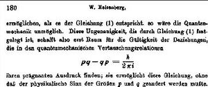 87. ^ أ ب ت Heisenberg, W. (1930) (in de), Physikalische Prinzipien der Quantentheorie, Leipzig: Hirzel  English translation The Physical Principles of Quantum Theory. Chicago: University of Chicago Press, 1930.