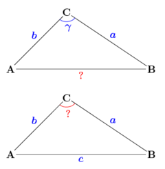 شكل. 3 - تطبيق المبرهنة :الكاشي زاوية أو ضلع مجهول.