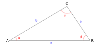 نعتبر مثلث ABC, حيث نستعمل المفاهيم الموجودة في الشكل1: من جهة α, β و γ