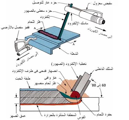 اللحام هو طريقة توصيل قطعتين فلزيتين بالصهر (شكل 7). و تتكون عملية اللحام الكهربائى من نقل الطاقة الكهربائية من نقطة لأخرى تتحول خلالها إلى حرارة. تستخدم هذه الحرارة لصهر المواد الفلزية معا. فينصهر الإلكترود الفلزى بهذه الطريقة و يلتئم الجزءان الفلزيان المراد لحامهما معا. لوقاية الفلز المنصهر من التأكسد ، تضاف عادة مادة معدنية خاملة سهلة الانصهار تسمى الصَّهور إلى الالكترود بحيث تنصهر فوراً عند سخونته و تطفو على سطح الفلز المصهور فتحميه. و يمكن لالكترودات اللحام أن تطلى بالصهورات من الخارج لعمليات اللحام بالقطعة ، أو من داخل الكترودات طويلة مجوفة لعمليات اللحام المستمر. أحيانا لا يكفى الصَّهور لوقاية الفلز المصهور من التأكسد و يستخدم عندئذ جو من النتروجين للوقاية أثناء اللحام. بالنسبة لبعض الفلزات لا يمثل النتروجين الجو الواقى المناسب و ذلك لاحتمال تكون نيتريدات مثل لحام التيتانيوم ، ففى مثل هذه الحالات يستخدم غاز الأرجون للوقاية. تشكل الوصلة الملحومة عادة أضعف أجزاء المُنشأ و بالتالى تُكرّس عناية كبيرة و اهتمام لتكنولوجيا اللحام.