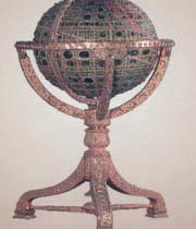 2- الكرة الأرضية: من المعروضات النفيسة الأخرى ويبلغ وزنها مع القواعد الذهبية حدوداً (37/5 كيلوغرام) وعليها 51366 قطعة جواهر مختلفة يبلغ وزن هذه الجواهر حوالي (3656/4 كغم). تم استعمال الزمرد للبحار والمحيطات، والياقوت والعقيق لقارة آسيا، وايران مرصعة بالألماس، أوروبا مرصعة بالياقوت، أفريقيا مرصعة بالياقوت الأحمر والغامق، أمريكا الشمالية والجنوبية واستراليا مرصعة بالياقوت والعقيق، وتم تحديد خط الاستواء بالألماس.