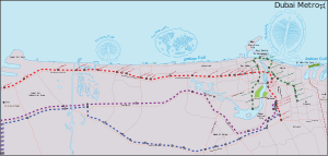 - الخط القرمزي بطول 49 كم، ليصل بين مطار دبي الدولي إلى مطار آل مكتوم الدولي.[6] وسوف يضم 8 محطات.