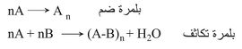 حيث A وB تدلان على المونومير الداخل بالتفاعل وتدل n على عدد الجزيئات الداخلة في تفاعل البلمرة.