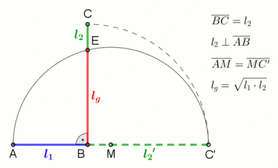 - Calculation of the geometric mean of two numbers in comparison to the arithmetic solution