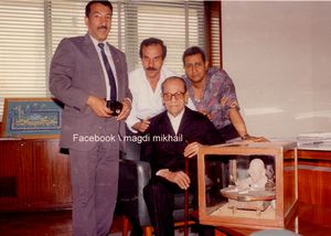 - تمثال للكاتب المصري نجيب محفوظ يصوره وهو جالس يكتب علي طبلية من اعمال النحات مجدي ميخائيل وهو من مقتنيات جريدة الاهرام