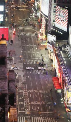 وقد أغلقت الشرطة كل الشوارع المجاورة لهذا الحي الذي يرتاده السياح وهواة المسرح وفيه تقع منطقة برودواي إذ أثار المشهد رعبا في الميدان الذي يشهد عادة ازدحاما كبيرا خاصة ليل السبت. وعمد أحد الفنادق الموجودة في المنطقة إلى منع نزلائه من المغادرة ليل السبت ولم يسمح لأحد بالدخول بينما سارع مطعم آخر إلى إغلاق أبوابه وإخلاء موظفيه.