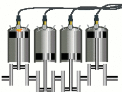 - شوط الإشعال ؛تقوم شمعة الشرر باشعال المخلوط ينتج عن ذلك انفجار المخلوط فيعمل على دفع المكبس لأسفل بقوة.