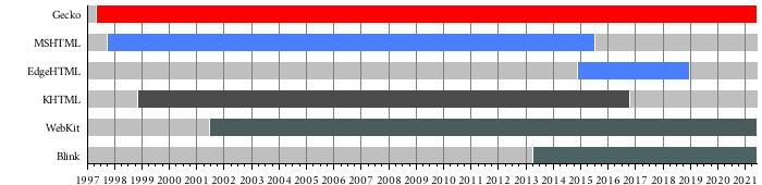 Only the duration of active development is shown, which is when relevant new Web standards continue to be added to the engine.