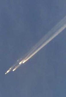 Mir breaks up in Earth's atmosphere over the South Pacific on 23 March 2001.
