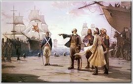 اشترك محمد علي بجيشه وأسطوله في اخماد ثورة اليونان في سنة 1824 الى سنة 1827 وانتصرت جنوده على الثوار انتصارات باهرة، غير ان نحياز انكلترا وفرنسا والروسية الى اليونان حال دون الحصول على ما كان يرجوه من وراء هذه الانتصارات، بل ان الأسطولين الإنكليزي والفرنساوي دمرا الأسطولين العثماني والمصري في موقعة نافارين الشهيرة في 20 تشرين أول (أكتوبر) 1827. واضطر الى سحب جنوده من المورة بناء على اتفاق خاص عقده مع دول الحلفاء المتحيزين لليونان.