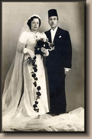 وكان لقائها الأول بأبا الحسن في مصيف حمّانا بجبل لبنان عام ١٩٣٨ بينما كان يزور شقيقها سليم البزري الذي كان يعرفه ، وكان أبا الحسن قد بلغ الثانية والأربعون بينما كانت هي في الرابعة والعشرين . ومن الجدير بالذكر أن الزيجات في ذلك العصر كان يتم ترتيبها مسبقاً في معظم الأحيان من قبل الأسرة ، غير أن زواجهما لم يتبع تلك العادات كما هو واضح . وقد كان لأم الحسن دورا كبيرا في حياته ، حيث وقفت خلفه وبجواره تسانده عن إيمان مطلق في جميع المحن التي مر بها رغم صعوبتها وتأثيرها على حياتهما العائلية . فقد كانت متعلمة وتجيد العربية والفرنسية والإنجليزية كما كانت شغوفة بالقراءة ومطلعة على الأحوال العامة . وكانت تقوم بمراجعة وطبع مسودّات الكتب التي نشرها بعد زواجهما على الآلة الكاتبة لإعدادها للمطبعة ، وفتحت بيتها مرحبة بضيوفه ورفاق جهاده وأقاربه سواء في القاهرة أو في بيروت وصادقت الكثير من زوجات أصدقائه . وبطبيعة الحال كان عليها أن تقوم بتربية أولادها ورعايتهم بمفردها خلال سنوات الصراع التي قضتها الأسرة .