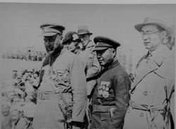 Soviet Union decided to aid the Xinjiang provincial government and sent some 2,000 Chinese soldiers forced by Japanese across the Soviet border and interned by the Soviets. These Chinese soldiers were known as the North-East National Salvation Army.[8] Their arrival coincaded with the brake of relations between Ma Shiming and Turkic rebels in Turpan. Soon, Sheng Shicai, Chief of Staff of the Xinjiang's Frontier Army, restored the provincial authority in Turpan.[2]