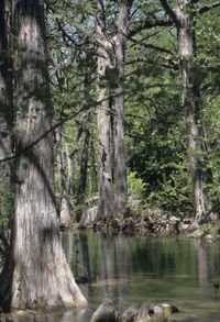 Bald Cypress trees growing along the small stream draining Hamilton Pool