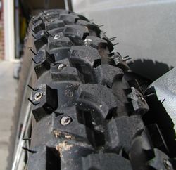 Street tires will also include wear limit indicators in the form of small raised bridges within the grooves. When the tread is worn down enough that the limit indicators make contact with the road, the tire is deemed to be at the end of its service life. Brake pads use similar indicators in the form of notches on their surface that disappear when they are used.