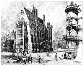 في القرن الثالث عشر، نشأت نزل القضاء كفنادق ومدارس لطلبة القانون. المدل تمپل هو الجزء الغربي من "التمپل"، المقر الرئيسي لـفرسان الهيكل حتى تم حلهم في 1312؛ كنيسة الهيكل مازالت باقية كـ"peculiar" (extra-diocesan) كنيسة إنر وميدل تمپل. لم يكن هناك "اوتر تمپل"، بغض النظر عن مبنى كتب العصر ڤيكتوري الذي يحمل هذا الاسم: أمر من عام 1337 يشير إلى "ممر عبر وسط باحة التمپل"، كان يستخدمها قضاة وموظفي chancery justices في طريقهم إلى وستمنستر والذي أصبح يعرف ببمر ميدل تمپل وربما أنه أعطي اسم النزل.[1]