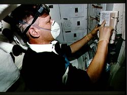 رائد الفضاء، كلود نيكولييه، يراجع دليل صيانة دورة مياه مكوك الفضاء، أثناء الرحلة STS-46