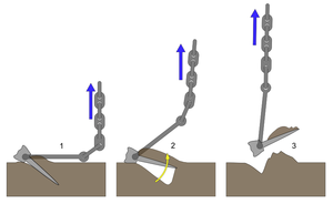 - تصميمات الخطاف تستخدم خطاف كبير المساحة للحصول علي قدر كبير من المقاومة لتحمل الحفر في قاع البحر. وعلى الرغم من امتلاكها قدرة أقل علي الأختراق ومصممة على الثبات أكثر من التحرك ووزنها الخفيف يجعلها أكثر شعبية.