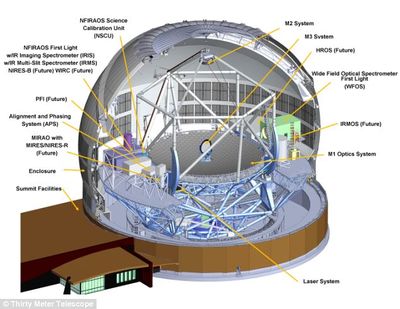 وسيتم بناء التلسكوب الذى يتكلف 1 بليون دولار في قمة بركان ماونا كيا في هاواي وسوف تمكنه المرآة بقطر 30 مترا تسعة أضعاف مساحة تجميع التلسكوبات البصرية المستخدمة اليوم