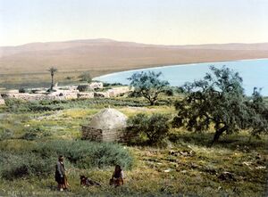 Photograph taken 1900ح. 1900 of al-Majdal, a village standing among the ruins of Magdala, Mary Magdalene's hometown[8][10][9]