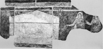 This fresco from the nave of the Dura-Europos church dates to 240ح. 240[49] and contains the oldest surviving depiction of Mary Magdalene.[49] She is shown alongside two other women (the third now almost completely missing due to extensive damage),[49] each holding a lit torch and a bowl of myrrh, as they approach Jesus's tomb, which is still sealed.[49]