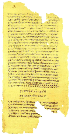 The Gospel of Mary is the only surviving apocryphal text named after a woman.[10] It contains information about the role of women in the early church.[10][43] The text was probably written over a century after the historical Mary Magdalene's death.[10] The text is not attributed to her and its author is anonymous.[10] Instead, it received its title because it is about her.[10] The main surviving text comes from a Coptic translation preserved in a fifth-century manuscript (Berolinensis Gnosticus 8052,1) discovered in Cairo in 1896.[10][8][43] As a result of numerous intervening conflicts, the manuscript was not published until 1955.[10] Roughly half the text of the gospel in this manuscript has been lost;[10][44] the first six pages and four from the middle are missing.[10] In addition to this Coptic translation, two brief third-century fragments of the gospel in the original Greek (P. Rylands 463 and P. Oxyrhynchus 3525) have also been discovered, which were published in 1938 and 1983 respectively.[8][43]