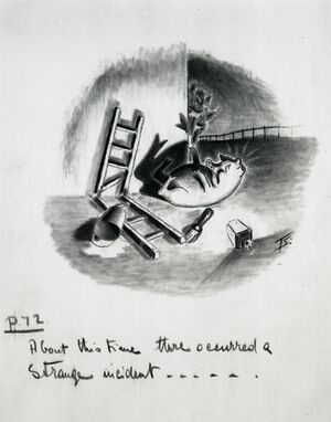 عام 1944، ضاعت المسودة تقريباً عندما دمرت قنبلة طائرة ألمانية من طراز ڤي-1 منزله في لندن. قضى أورويل ساعات في البحث بين الأنقاض للعثور على الصفحات سليمة.[53]