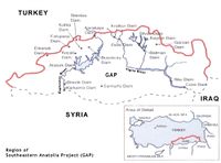 بدأت تركيا مشروع جنوب شرق الأناضول في عام 1989 في عهد الرئيس التركي طرغد اوزال لبناء 22 سد على منابع نهرا دجلة والفرات. وقد أبدت دولتي المصب، العراق وسوريا تخوفها من المشروع، فطمأنتهما تركيا بأن المشروع لن يؤثر على حصصهما من المياه، مشيرة إلى أن هذه السدود هي لتوليد الكهرباء. مع تقدم المشروع، تغيرت الخطط. وأصبح من أهداف المشروع استصلاح الأراضي القاحلة وزراعتها بالقطن. وبدأت كل من العراق وسوريا في الشكوى من قلة ما يصلهما من ماء. ومع حلول يوليو 2008، بدأ العراق يشهد ما لم يره منذ آلاف السنين. إذ ظهر قاع نهر الفرات صيفاً، بأثر من قلة المياه. لم يصحب التصريحات الدافئة من تركيا تجاه العرب، تمرير كميات كافية من الماء في الرافدين الخالدين. وبدأ الحديث عن تصدير تركيا للماء إلى دول أخرى، في حين يعاني العراق وسوريا عطشاً هائلاً. ويكتمل المشهد بظهور مشايخ يبشرون العراقيين بحديث للرسول بأنه من العلامات الصغرى ليوم القيامة، انكشاف قاع الفرات عن جبل من الذهب!
