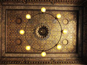 السقف المذهب لإيوان القبلة وتظهر به الفخامة ودقة الصنع