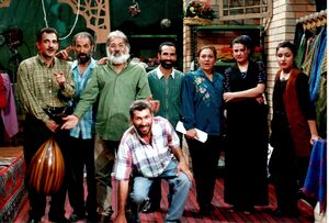 من اليمين آلاء حسين، أسماء صفاء، سمر محمد، حيدر منعثر، عز الدين طابو، عبد الجبار الشرقاوي، سهيل شوقي، أياد راضي في كواليس مسلسل الطرائف الغريبة والنوادر العجيبة