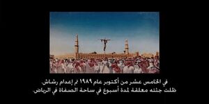 • في 15 أكتوبر 1989، السياف يعدم رشاش في ساحة الصفاة بالرياض، في حضور عزام وفهد. وصلب جثته لأسبوع.