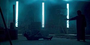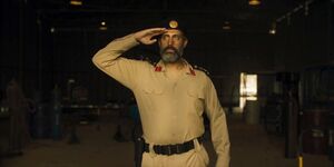 فقد استخدم خنجر عليّ الذي ألقاه فهد بالخطأ على الأرض ليتقي استخدام عليّ له. ويبدأ في قطع وثاق يديه. وعندما يأتي فهد لأخذه نحو الهليكوبتر، يحاول طعنه بالخنجر، وبعد تشابك عنيف بالأيدي، ينجح رشاش في سحب مسدس فهد الملقى على الأرض.
