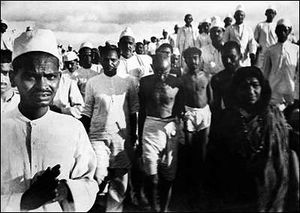أختير غاندي قانون الملح البريطاني 1882 كأول هدف لساتياگراها. مسيرة الملح إلى داندي، تعرض فيها مئات المحتجين السلميين في داراسانا لبطش الشرطة البريطانية، والتي حصلت على تغطية إعلامية عالمية، وأظهرت فعالية استخدام العصيان المدني كأسلوب لمحاربة الظلم الاجتماعي والسياسي.[8] تعاليم ساتياگراها ومسيرة داندي كان لها تأثير بارز على ناشط الحقوق المدنية الأمريكي مارتن لوثر كنگ، وقتاله من أجل الحقوق المدنية للسود وأقليات أخرى في الستينيات.[9]