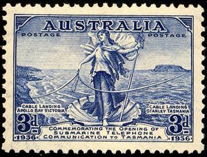 أمفيتريت على طابع بريدي لعام 1936 احتفالاً باكتمال انشاء الكابل.