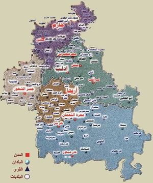 - تبعد عن إدلب 9 كم شمالا وعن نقطة باب الهوى الحدودية مع تركيا 30 كم جنوبا. تقع مدينة "معرة مصرين" التي تعتبر حاضرة المنطقة الشمالية في المحافظة حيث تحيط بها أشجار الزيتون كما يحيط السوار بمعصم اليد، قال فيها الرحالة الأديب عمر بن علي الميقاتي الحلبي : «معرة مصرين بلدة كأنها صورة جنة الخلد منقوشة في عرض الأرض، وهي بلدة واسعة الرقعة، طيبة البقعة، واسطة البلاد، ومن أي طرف قمت إليها وجدت الأشجار حولها من كل ذات ثمر تؤتي أوكلها وهي ذات تاريخ مجيد.