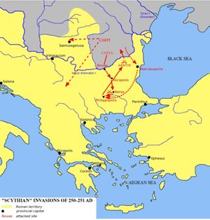 جزء من الحروب الرومانية القوطية في القرن الثالث م. جزء من الحروب الرومانية الجرمانية | |||||||