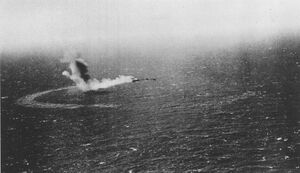 36. ^ Cressman 2000, p. 93; D'Albas 1965, p. 96; Dull 1978, pp. 127–128; Hoyt 2003, pp. 33–34; Lundstrom 2005b, p. 181; Lundstrom 2006, pp. 139, 147, 152–153; Millot 1974, pp. 51–53; Morison 1949, p. 29; Willmott 2002, pp. 41–42. Gotō refueled his cruisers from the oiler Irō near the Shortland Islands on 5 May (Morison, p. 29). Also this day, Inoue shifted the four I-class submarines deployed in the Coral Sea to a point 150 nmi (170 mi; 280 km) northeast of Australia. None of the four would be a factor in the battle (Lundstrom 2006, p. 150). Since Takagi transited the Solomons during the night, the Nouméa-based U.S. Navy PBYs did not sight him (Lundstrom). Takagi's oiler was Tōhō Maru (Lundstrom).