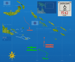 Gotō's force left Truk on 28 April, cut through the Solomons between Bougainville and Choiseul and took station near New Georgia Island. Marumo's support group sortied from New Ireland on 29 April headed for Thousand Ships Bay, Santa Isabel Island, to establish a seaplane base on 2 May to support the Tulagi assault. Shima's invasion force departed Rabaul on 30 April.[24]