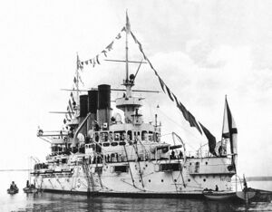 The Battle of the Yellow Sea (يابانية: 黄海海戦; روسية: Бой в Жёлтом море) was a major naval battle of the Russo-Japanese War, fought on 10 August 1904. In the Russian Navy, it was referred to as the Battle of 10 August.[1] The battle foiled an attempt by the Russian fleet at Port Arthur to break out and form up with the Vladivostok squadron, forcing them to return to port. Four days later, the Battle off Ulsan similarly ended the Vladivostok group's sortie, forcing both fleets to remain at anchor.