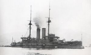 Shikishima 4 12-inch guns, 14 6-inch guns 9 inches 1898 Thames Iron Works, Great Britain 1 forward 305 mm gun barrel burst