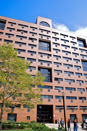 The main campus is housed on a 1،300 acre (5.3 km2) property. This property is largely covered with woodland and fresh-water swamp making it a very diverse wetland that is home to a number of somewhat rare plant species. The campus comprises 237 buildings and 5.1 million square feet (474,000 m2) of building space. The nearly universal use of bricks in the campus's construction – estimated at 15,710,693 bricks as of August 6, 2018[14] – prompted students to give it the semi-affectionate nickname "Brick City," reflected in the name of events such as the annual "Brick City Homecoming." Though the buildings erected in the first few decades of the campus's existence reflected the architectural style known as brutalism, the warm color of the bricks softened the impact somewhat. More recent additions to the campus have diversified the architecture while still incorporating the traditional brick colors. The main campus was listed as a census-designated place in 2020.[15]