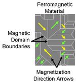 يعدّ الحديد والكوبالت والنيكل صنفاً من المواد المغنطيسية تدعى ذات المغنطيسية الحديدية. تتمتع هذه المواد بعزم مغنطيسي غير معدوم حتى في غياب الحقل المغنطيسي. وهذا المفعول هو نتيجة للتآثر الشديد بين العزوم المغنطيسية للذرات أو الإلكترونات في المادة المغنطيسية التي تدفعها إلى الاصطفاف متوازية بعضها مع بعضها الآخر. تنقسم المواد حديدية المغنطة عادةً إلى مناطق تدعى قطاعات، وفي كل قطاع تصطف العزوم الذرية متوازية فيما بينها. وللقطاعات المنفصلة عزومٌ كليةٌ لا تتجه بالضرورة في اتجاه واحد. وهكذا وعلى الرغم من أن قطعة عادية من الحديد قد لايكون لها عزم مغنطيسي إجمالي، فإن المغنطة تُحرَّض فيها بوضعها في حقل مغنطيسي، مما يؤدي إلى اصطفاف عزوم كل القطاعات. إن الطاقة المصروفة في إعادة توجيه القطاعات من حالة المغنطة إلى حالة إزالة المغنطة تتجلى في استجابة متأخرة تعرف باسم البِطاء hysteresis [ر. البطاء المغنطيسي]. تفقد المواد حديدية المغنطة خواصها المغنطيسية عند تسخينها. ويصبح هذا الفقد كاملاً فوق درجة حرارة كوري، نسبة إلى الفيزيائي الفرنسي پيير كوري الذي اكتشفها في عام 1895.
