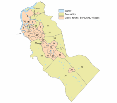 The 2018 American Community Survey estimated[21] show 25 municipalities with poverty rates below the statewide average (10.5%). Nine municipalities had poverty rates higher than the county-wide estimate (12.6%): Camden, Woodlynne, Chesilhurst, Lawnside, Bellmawr, Clementon, Blackwood, Brooklawn, and Lindenwold. Additionally, Cherry Hill and Voorhees are affluent areas with higher-poverty areas including Echelon and Ellisburg.