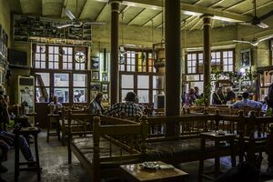 مَقهى الشابندر في شارع المتنبي عام 2009 بعد ترميمه.