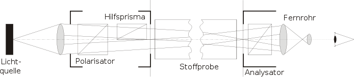 ويتكون من أنبوبة طويلة من الزجاج المستوي, ويتم وضع محلول من العينة. وفى أخر كل نهاية من الأنبوبة يوجد منشور نيكول. ويظهر الضوء خلال الأنبوبة, ويدور المنشور في الناحية الأخرى حتى ينتهى الضوء، ويتم تعيين زاوية الدوران. ومنها يتم حساب الدوران النوعي للمادة.